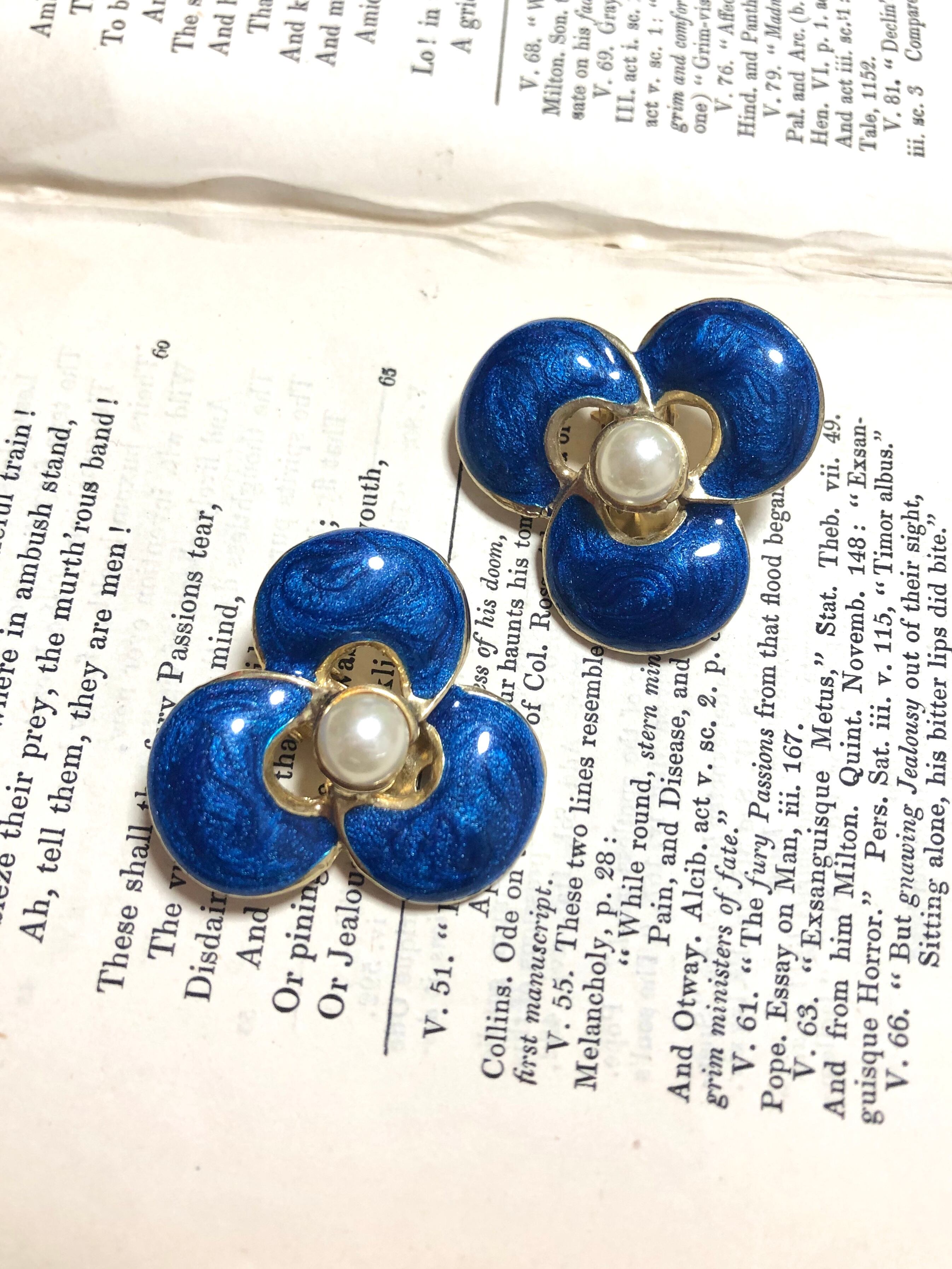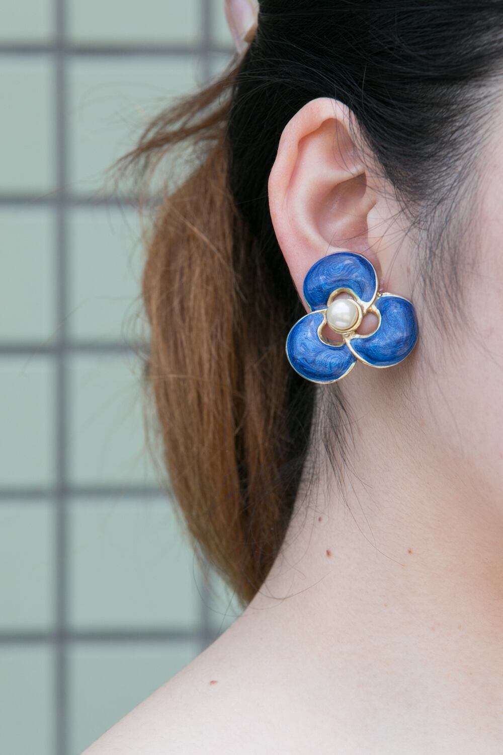 ラメ入りのマーブルブルーが美しいイヤリング。