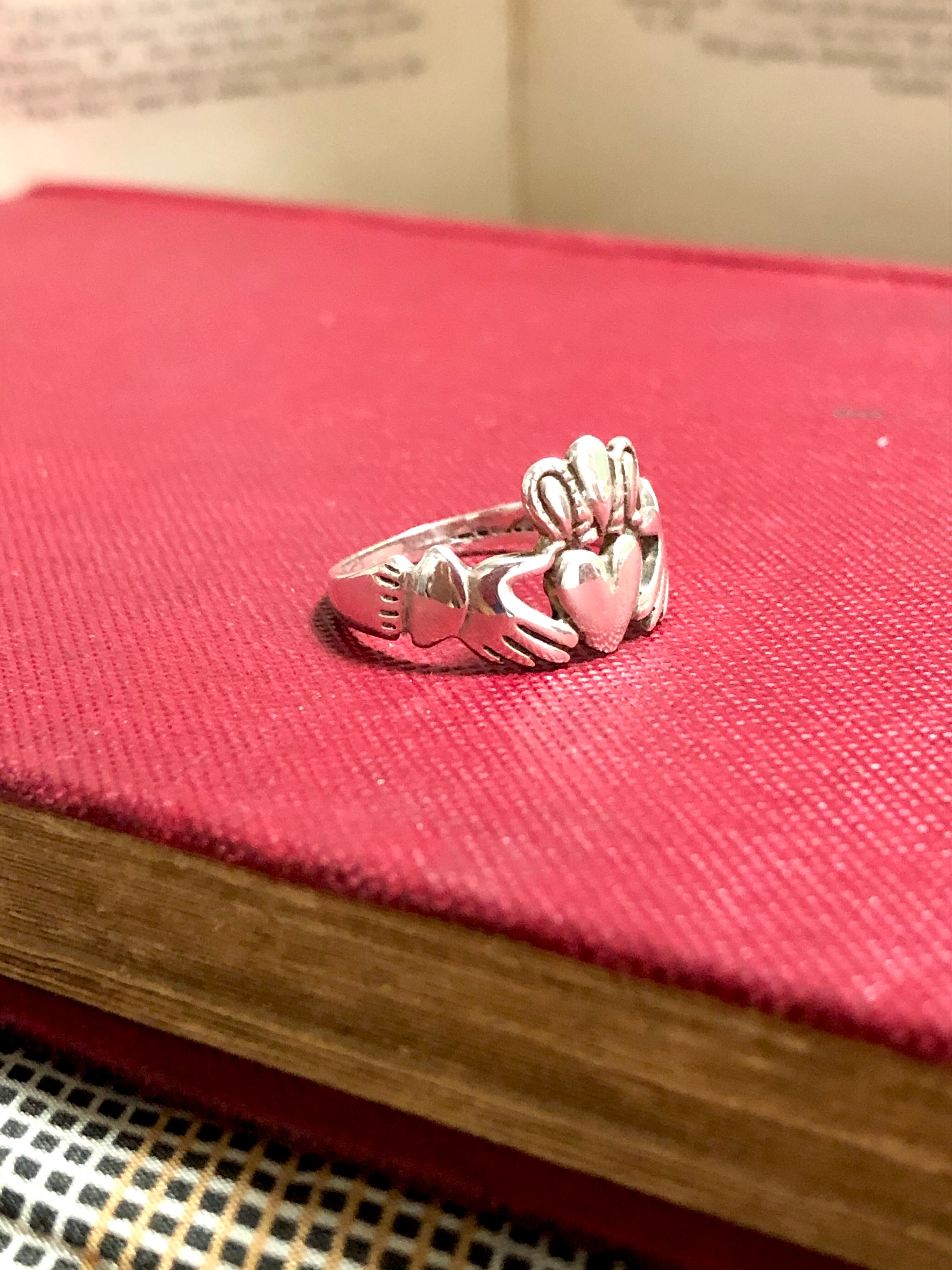 指輪には、「愛・友情・忠誠」の意味があり、ハートが「愛」、両手が「友情」、王冠が「忠誠」を表しています。