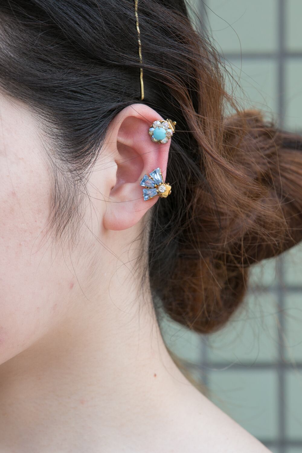小さなイヤリングは重ねづけもおすすめです。