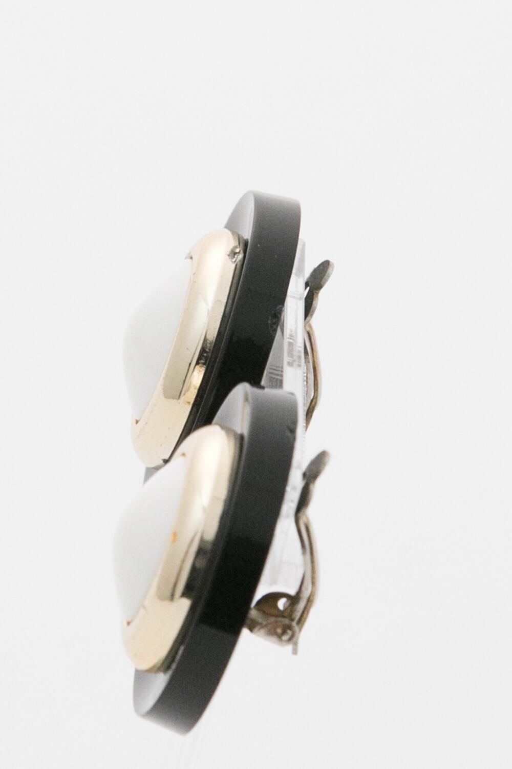 白と黒の組み合わせがアクセントになる大ぶりの丸型イヤリング。
