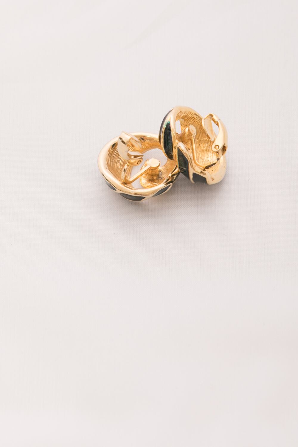 美しいグリーンとダークグリーンが渦巻くイヤリング。