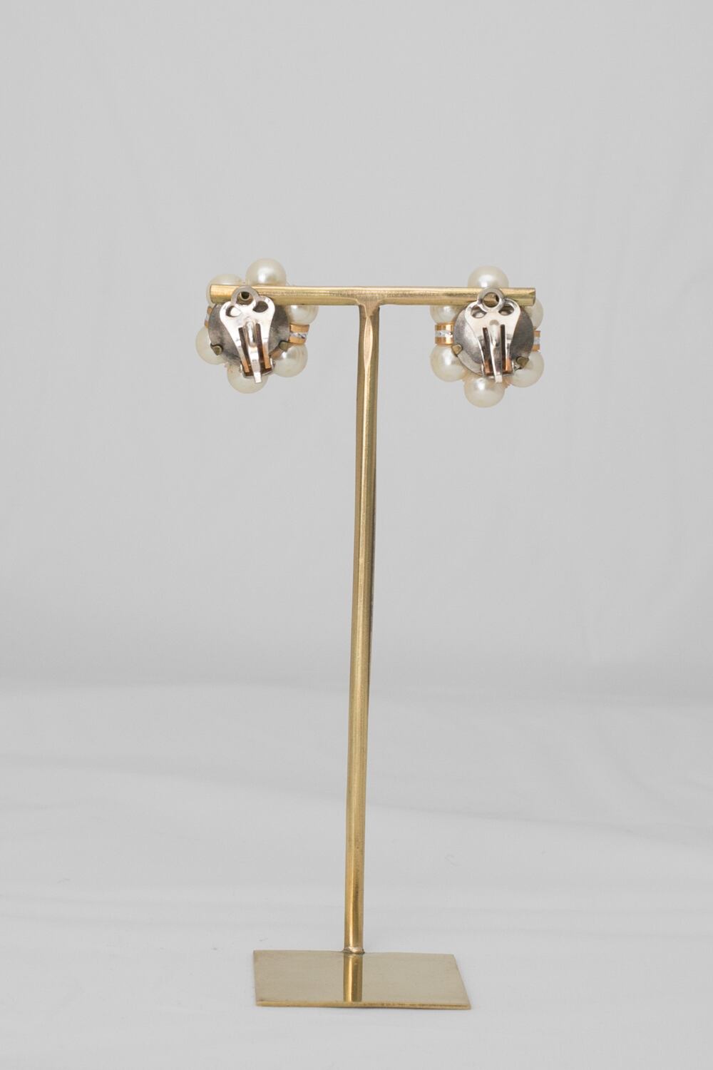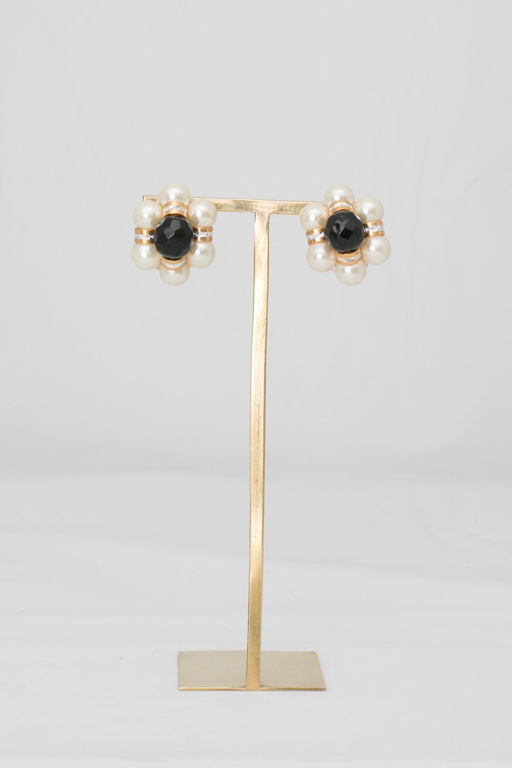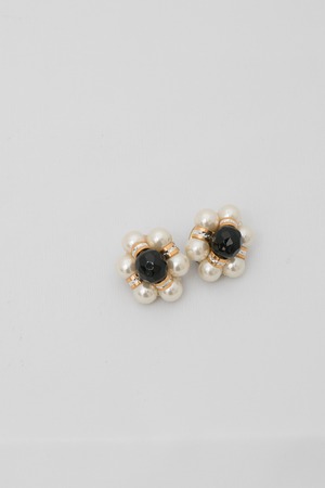 パールとブラックグラスのコントラストが美しいイヤリング。
