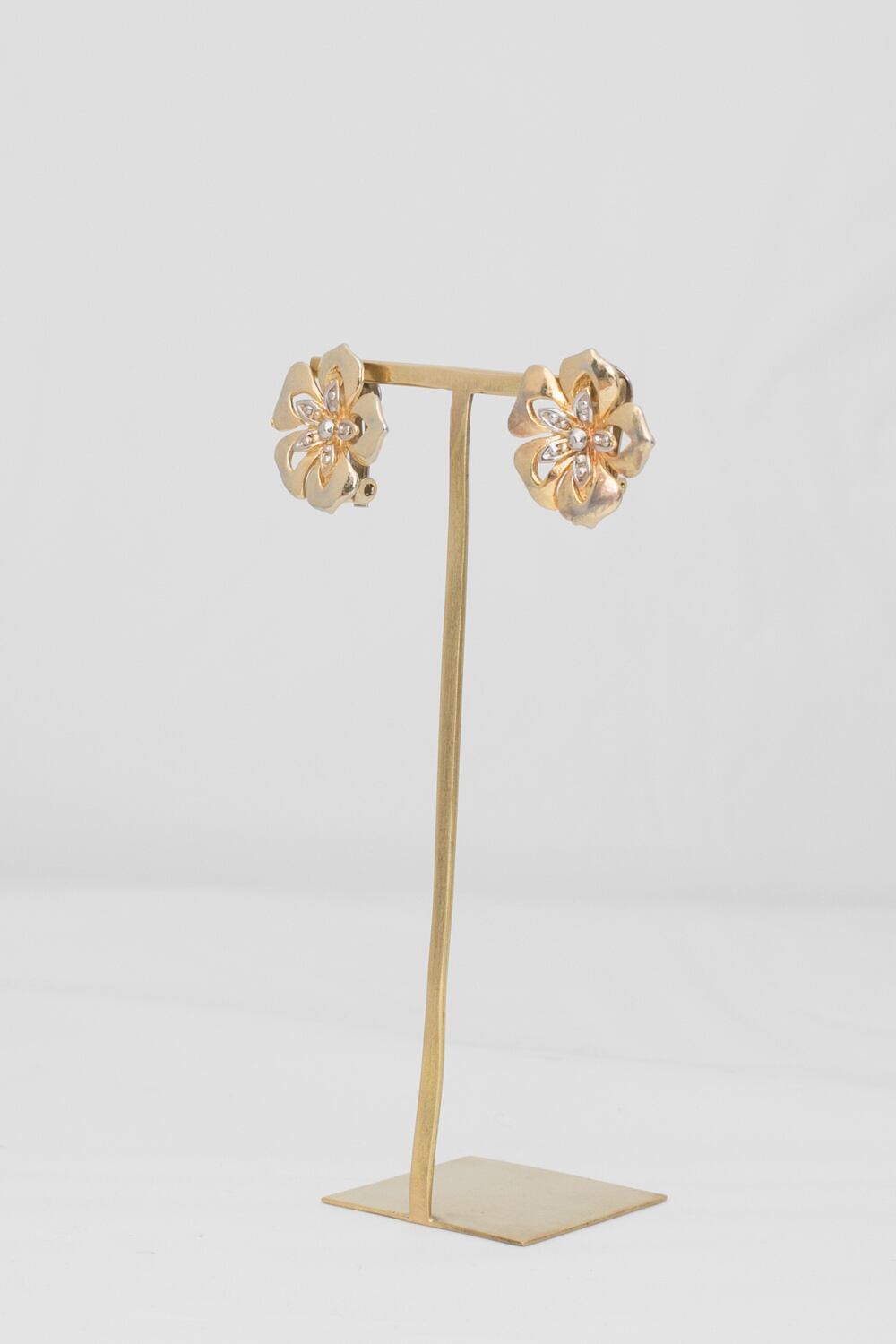 明るいゴールドとシルバーのコントラストが美しいイヤリング。